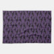 A spooky purple Halloween kitchen towel with a flaying bat pattern .