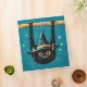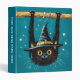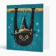 Celebrate spooky season with a flying black cat in a witch hat soaring across the night sky.