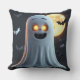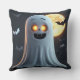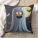 Spooky Ghost Cartoon With Bats Throw Pillow
