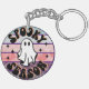 White sheet ghost Halloween keychain - spooky acrylic gift or decor.