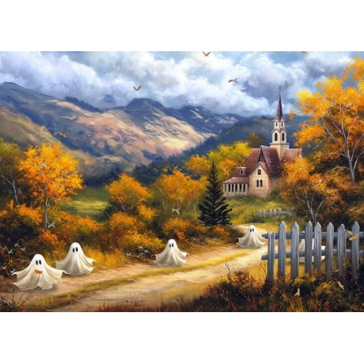 Add a touch of haunting charm to your walls with this spooky art print. A lonely ghost enjoys a quiet moment on a swing in a misty autumn forest, surrounded by glowing fall leaves. This piece is perfect for creating a beautiful, atmospheric Halloween vibe or as unique seasonal decor all autumn long. A wonderful gift for anyone who loves cozy horror and the magic of fall.