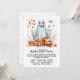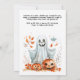 The back of the invitation maintains the same clean white background, ensuring a cohesive design. There is additional space for extra text or notes, where you can include further details or a special message like "Costumes welcome!" or "Come for the treats and fun!" This design combines a cute, festive aesthetic with practical details, making it perfect for a joyful and memorable Halloween party.