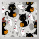 Fun and spooky Halloween vibe with cute cartoon black cat surrounded by playful and friendly.