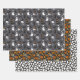 A set of wrapping paper sheets for Halloween featuring three patterns in matching styles: ghosts, skulls, ravens, bats and cats in grey, white, orange, and black; happy pumpkins and mushrooms with spiderwebs; and lots and lots of ghosts. Cute grey, black, and orange Halloween wrapping paper set for Halloween baby showers, Halloween birthday parties, and Halloween costume parties or any other fun and spooky Halloween event. Gender neutral Halloween wrapping paper set for all your fun Halloween events in traditional Halloween colours.