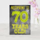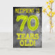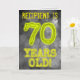 The front of this mysterious looking, customizable birthday card design features the message "70 YEARS OLD!" with characters and digits having a spooky glowing aura inspired look, on an eerie grey cloudy mist-inspired background pattern. The front also features an editable recipient name. The inside features a customized birthday greeting message. A customizable birthday greeting card like this might be used to send a birthday greeting message to somebody celebrating their 70th birthday. [~Z0000365]