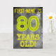 The front of this eerie looking, personalized birthday card design features the message "80 YEARS OLD!" with characters and digits having a mysterious glowing aura inspired appearance, on a spooky gray cloudy mist-inspired background pattern. The front also features an editable recipient name. The inside features a birthday greeting message that can be edited. A customizable birthday greeting card like this might be a special way to commemorate somebody’s eightieth birthday. [~Z0000365]