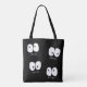Spooky Googly Eye Modern Monogram Custom Halloween Tote Bag, design features "Googly Eye" in white. Personalize the custom monogram with an individual name or family name.