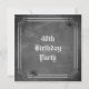 Personalized, custom spooky, scary spiders and cobwebs 40th birthday party invitation with a Halloween theme. The front of this cool card has an old metal effect silver frame with spider's cobwebs in the top corners. In one / 1 cobweb is a red back spider and in the bottom left corner on the frame is a black spider, all printed on a vintage black chalkboard background. The reverse of this card has the same design with the frame, cobwebs and spiders on the black chalkboard background. Perfect birthday party invites with a Halloween theme. All text on these spooky stylish and unique birthday party invites is fully customizable to meet your requirements. If you need any assistance customizing your product please contact me through my store and i will be very happy to help you. SHM_GRAPHICS FLASH PANEL <embed wmode="transparent" src="http://www.zazzle.com/utl/getpanel?zp=117834253605190362" FlashVars="feedId=117834253605190362" width="450" height="300" type="application/x-shockwave-flash"></embed><br/>Browse other <a href="http://www.zazzle.com/">gifts</a> from Zazzle.<br />