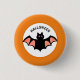 Spooky Halloween bat on orange and white Button. Text can be personalized.