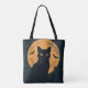 Spooky Halloween Black Cat Silhouette Full Moon Tote Bag