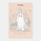 These adorable Halloween Post-it Notes feature a charming ghost in a witch's hat surrounded by beautiful flowers and a black cat perched on a pumpkin. The design is perfect for adding a touch of spooky whimsy to your planner, notebook, or desk. With a soft peach background and detailed illustrations, these notes are sure to delight. Personalize them with your name or a special message for a unique Halloween touch. Get ready for some ghostly fun this fall!