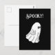Spooky White Ghost on a black and white Halloween Postcard for friends and family.