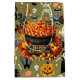 A Cute Kids Happy Halloween Medium Gift Bag Of Spooky Halloween Things On Green Background And Pot Of Candy Corn Centre
