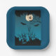 Spooky Halloween Night Full Moon and Flying Bats Paper Plate