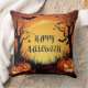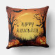 Spooky Halloween Night with Glowing Pumpkins Throw Pillow