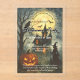 Set the tone for a frightfully fun evening with this customizable transparent acrylic Halloween party invitation, featuring a hauntingly beautiful translucent illustration of a glowing full moon, eerie haunted house, carved pumpkin, and mysterious witch silhouette.