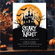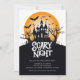 This haunting invitation features a black and white design with a haunted house, flying bats, and the saying scary night. It's the perfect way to add a touch of Halloween spookiness to your party and let your guests know they're in for a frightfully good time.