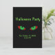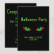 Eyes are spooky with a little pumpkin touch on back. Black with green text RSVP information.