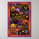 A vibrant and intricate illustration of Halloween patterns, featuring a variety of iconic symbols such as jack-o-lanterns, bats, spiders, and cobwebs, set against a warm and eerie orange and purple background, with bold lines, geometric shapes, and stylized fonts, incorporating shades of black, yellow, and red to create a festive and spooky atmosphere, with intricate details and textures that evoke the spirit of the Halloween season.