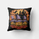 Spooky Halloween scarecrows under a full moon Throw Pillow