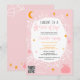Invite friends and family to celebrate with this spooky and fun Halloween pink baby shower invitation! The design features a editable pastel pink background adorned with a whimsical spider web pattern, complete with orange stars, a crescent moon, and a charming pumpkin illustration. The headline reads, "Caught in a Web of Joy!" in a playful script font, setting the festive tone for the event. A convenient QR code is also included, making it easy for guests to find more information and RSVP. Perfect for a Halloween-themed baby shower, this invitation combines festive elements with a touch of spooky charm, ensuring a memorable celebration for the soon-to-arrive little one. All the colours are fully editable.