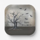 Spooky Halloween Tree with Raven and Bats Paper Plate