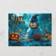 Spooky Halloween with Evil Snowman, Pumpkin Holiday Postcard