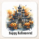 Enjoy Halloween and protect your table and party decor with this custom paper coaster featuring a spooky haunted castle image. Boooooo! Customize the text with your own message.
