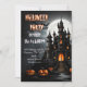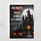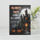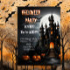 A spine-chilling Halloween party invitation showcases a haunting black house that looms ominously under a haunting moonlit sky.