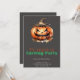 This invitation sets the mysterious tone of Halloween with its dark grey background, featuring a creepy jack-o' lantern wearing a unique witches hat, all centred at the top. The design is sure to captivate your guests and set the perfect mood for a pumpkin carving celebration filled with spine-tingling fun.