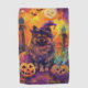 Embrace the Halloween spirit with this enchanting design featuring a cute dog in a witch hat surrounded by carved pumpkins. Perfect for adding a touch of spooky charm to your festive celebrations.