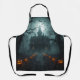 A mysterious and haunting Halloween atmosphere with a dark mansion, bats flying, and flickering jack-o'-lanterns lighting the path under a glowing moon.