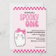 Introducing our "Spooky One Cute Ghost retro girl pink Birthday Invitation" – the perfect blend of adorable and eerie for your little one's milestone celebration! This invitation features a charming ghost character with pink bow in a soft pink hue, designed to capture the whimsical spirit of a first birthday party with a playful, spooky twist