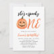 Cute, Halloween-themed birthday party invitations featuring the phrase "He/She's a Spooky One" in a handwritten script with a watercolor jack-o-lantern. Personalize the spooky 1st birthday party invitations with your party details below.