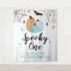 Spooky One! Halloween first birthday party sign with turquoise pumpkins and stars and spiders.