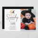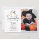 Celebrate your little one's special day with our enchanting Halloween-themed birthday invitation! Featuring a charming ghost wearing a witch hat and a whimsical moon backdrop. Perfect for a spooky yet sweet celebration, this invitation sets the tone for a memorable birthday party filled with fun and magic. Invite your guests to join in the festivities with this delightful design that is sure to bring smiles and excitement!