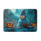 Spooky Pumpkin and Snowman, Forest Halloween Scene Bath Mat