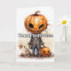 This awesome card features a nefarious looking pumpkin fiend. Please feel free to edit the text to make this Halloween card personal and one of a kind.
