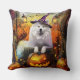 Spooky Samoyed Dog Halloween Witch And Pumpkin Throw Pillow