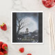 A good celebration is as much about the presentation as it is about food. These personalised Halloween scene napkins featuring a spooky scene and a scary pumpkin head scarecrow, painted in watercolour, will be perfect for a Halloween party. © Julie McIver