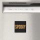 Grunge illustration with "Spooky season" text design in white, orange and black colours