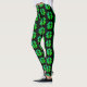 A pattern of spooky skull faced shamrocks in vibrant green tones on black.