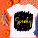 Step into the Halloween season with our delightful "Spooky Stars" white t-shirt. This whimsical design features the word "Spooky" in a charming yellow script, surrounded by playful purple stars and pink dots. It's the perfect blend of festive fun and casual style, making it an excellent choice for Halloween parties, trick-or-treating, or simply embracing the spooky vibes all season long. This t-shirt is sure to become a favourite for anyone who loves the magic of Halloween.