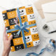 This custom gift wrap features a black, orange and white chequered pattern with a stitch face skeleton theme. Other colour options and matching products with this design are available in my store. Be sure to follow me for new product updates. Thank you for your interest in SapphireDesigns!