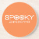 Simple and modern Spooky Typography Halloween Coaster in orange and white featuring a cool text design with two whimsical ghosts peeking through the word "Spooky." This fun Halloween coaster is both decorative and useful for protecting your furniture! Easy to customize, add your own spooky text. Click on the "Customize It" button to move the design element, change the fonts or text colours, and add/remove additional text.