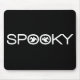 Simple and modern Spooky Typography Halloween Mousepad in black and white featuring a cool text design with two whimsical ghosts peeking through the word "Spooky." This sassy mouse mat is a fun way to show your Halloween spirit and spruce up your work area! Easy to customize, simply add your own spooky text! Click on the "Customize It" button to move the design element or add your own personalized text.