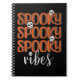 Halloween illustration with "Spooky, Spooky, Spooky vibes" text design and skulls in white, orange and black colours