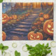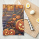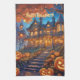This kitchen towel features a spooky mansion in the forest with illuminated windows surrounded by lots of pumpkins. Perfect Halloween gift! Custom text.