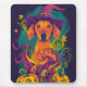 Spooky Vizsla Dog Halloween Witch And Pumpkin Mouse Pad