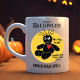 This cute Halloween mug features an image of a spooky black voodoo doll with a pin stuck in its heart, a glowing full moon, decorative script typography that reads, “Happy Halloween,” and customizable text that says, “Mr. Big Stuff Vodoo You Think You Are, and “Under Your Spell.” Add a name or modify the three text areas to create humourous design will appeal to coffee lovers and Halloween enthusiasts.